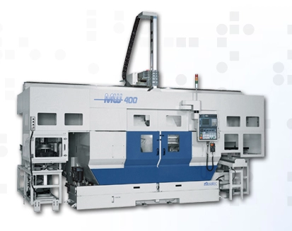 Twin spindle turning center with column/turret bar construction.