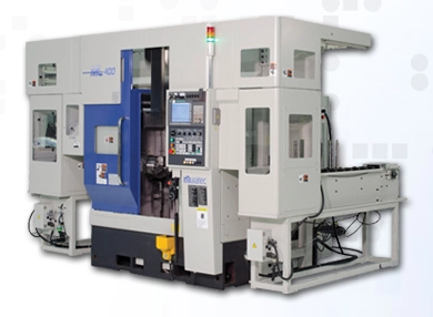 The ML400 super compact shaft turning machine allows for the automated turning of shaft parts up to 400 mm (15.7") in length and up to 200 mm (7.9") in diameter. With twin turrets (upper and lower), cycle time reductions can be realized by pinch turning. The ML400 is available with one or two turrets and with or without the proven Muratec high speed 3-axis CNC gantry loader.