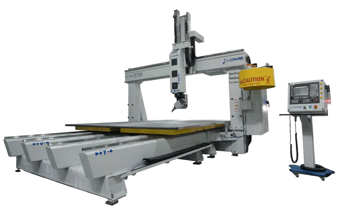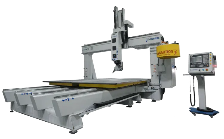 The Teton5, with its advanced 5-axis CNC capabilities, now boasts enhanced efficiency through pendulum processing, allowing for continuous operation and minimized downtime. This feature is perfect for high-volume production environments where maximizing machine utilization is key. The fixed gantry offers unmatched rigidity in High-Z applications which ensures that the Teton5 remains at the forefront of precision and flexibility, catering to industries that demand the highest standards of accuracy and efficiency.