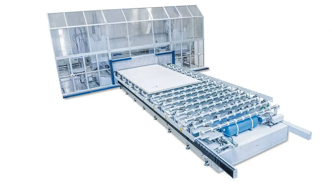 The matrix worktable that characterizes the avant caravan solution allows to reduce the set-up time of the clamping system to zero. Each suction cup can be independently locked/unlocked, which makes it possible to clamp all types of customer's panels. Now with +225% more suction cups.