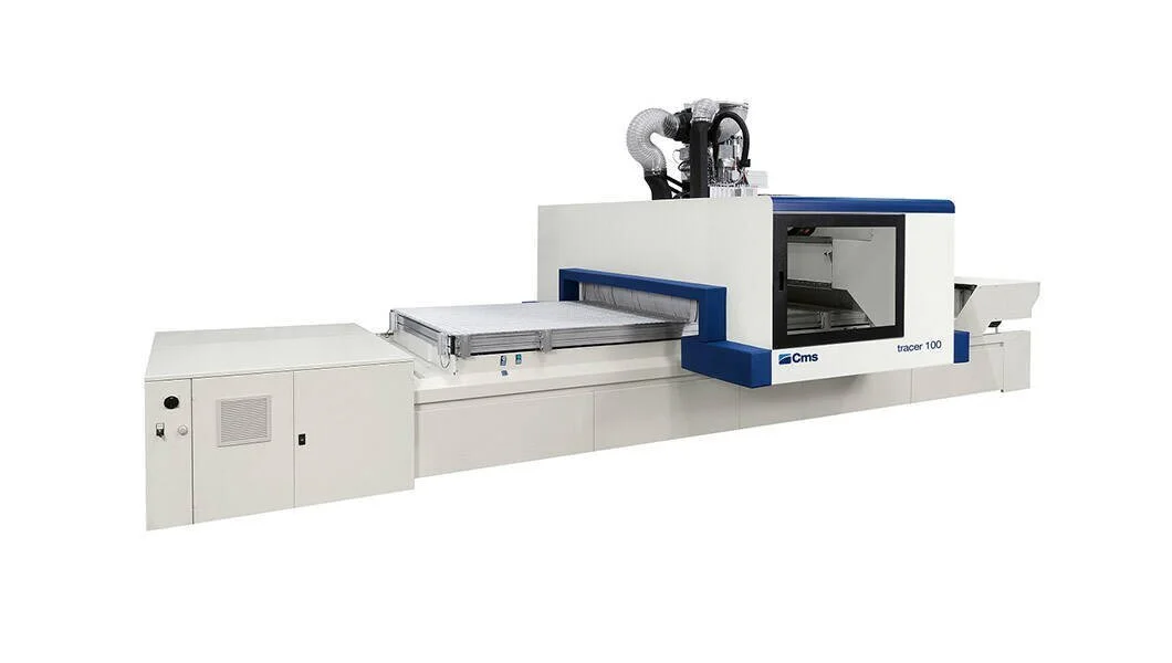“All in one” machining center, 3 and 5 axes for the processing of plastic materials and advanced materials, equipped with technical solutions especially dedicated to the technical article and the low-drawing thermoformed products.