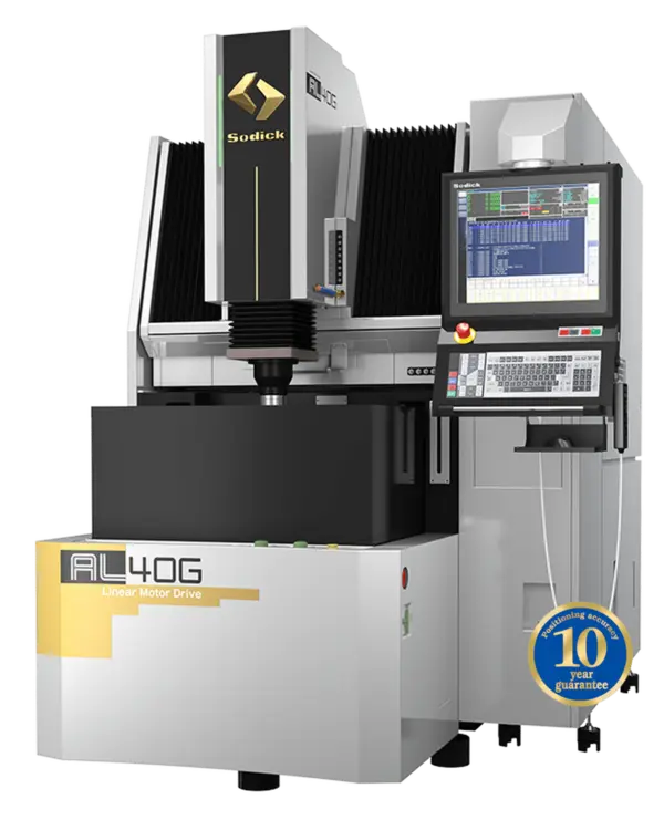 The AL40G, flat rigid linear motor drive die-sinker EDM which incorporates Sodick’s new generation SP controller with the Smart Pulse generator